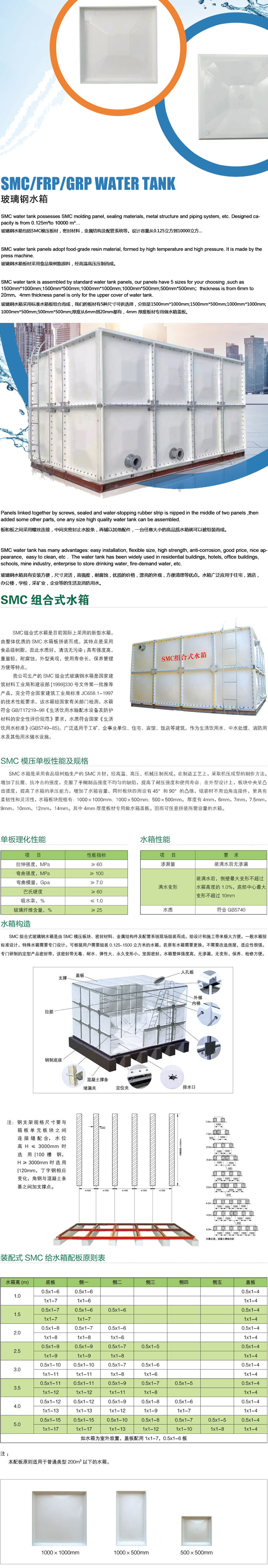 玻璃鋼水箱整體由優質的SMC水箱板拼裝而成。其特點是采用食品級樹脂,因此水質好,清潔無污染,產品具有強度高,重量輕,耐腐蝕,外型美觀,使用壽命長,保養管理方便等特點。 ...